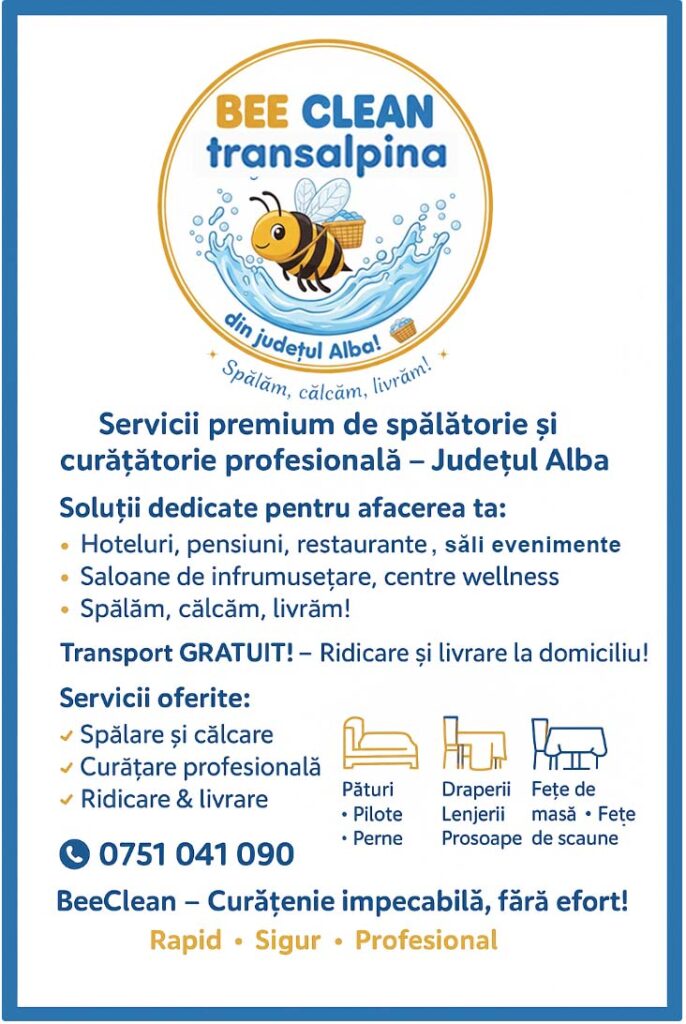 BeeClean Transalpina este o spălătorie profesională specializată în servicii dedicate business-urilor din HoReCa din județul Alba. Asigurăm preluare, curățare și livrare rapidă pentru hoteluri, pensiuni, restaurante, cafenele și săli de evenimente. Ne adaptăm ritmului tău de lucru, procesăm volume mari și garantăm aceeași calitate la fiecare ciclu. Oferim un parteneriat stabil, comunicare clară și respectarea timpilor de predare. Cu BeeClean Transalpina, ai textile mereu curate, igienizate și pregătite pentru clienții tăi.